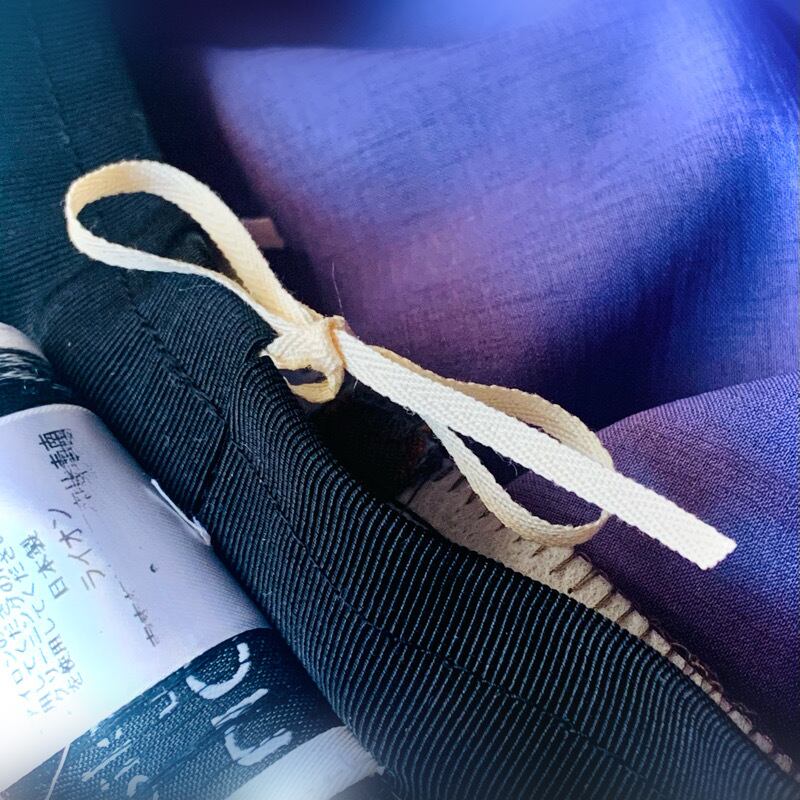内側スベリ部分にサイズ調整リボンつき、56〜58cm対応