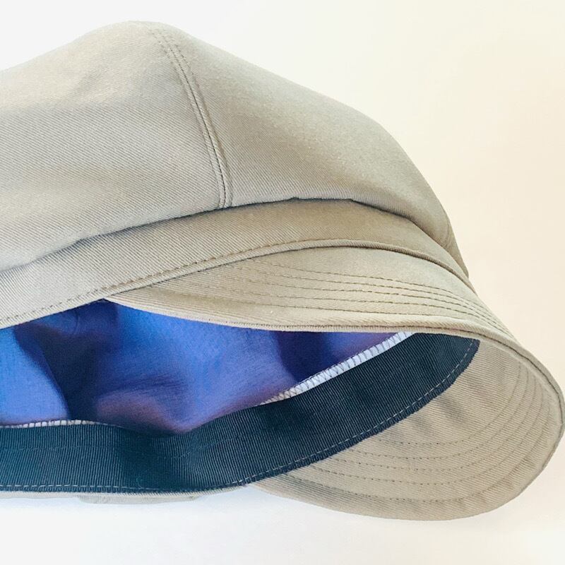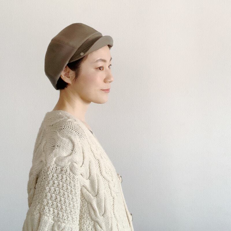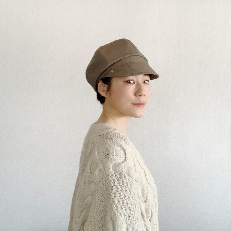 こだわりのブリム角度は目元に影を作ります。柔らかい仕立てで、ブリムを折り上げてベレー風にかぶるアレンジも。